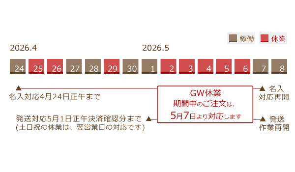 2026年5月2日から5月6日は、ゴールデンウィーク休業とさせていただきます。